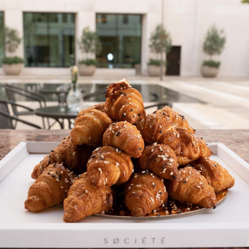 - mini croissants glazed in honey and topped with sesame | it comes with honey syrup -